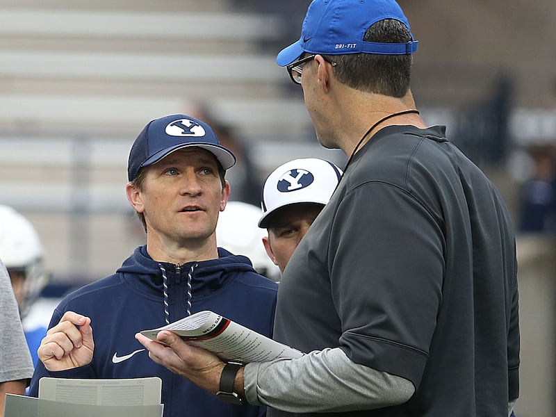 When Grimes left BYU, he had a ton of experience from all over the country, but had only been offensive coordinator for three years, all at BYU. Three veteran guys he left behind had a combined 59 years coaching experience, a huge chunk of them acting as offensive coordinators at Utah, Southern Utah and Weber State.
