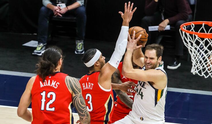 - There were at least two possessions in the first quarter when Bojan Bogdanovic had to be directed to his man on defense or was late rotating after Mitchell recovered from doubling Zion Williamson, and it led to two open looks for the Pelicans. Then he failed to look up court after a rebound so he missed Mike Conley breaking to the other end. Mitchell sent the full-court pass down to Conley after getting the outlet from Bogdanovic but it was just a second too late and turned into a turnover, which wouldn’t have happened had Bogdanovic looked up court rather than behind him.