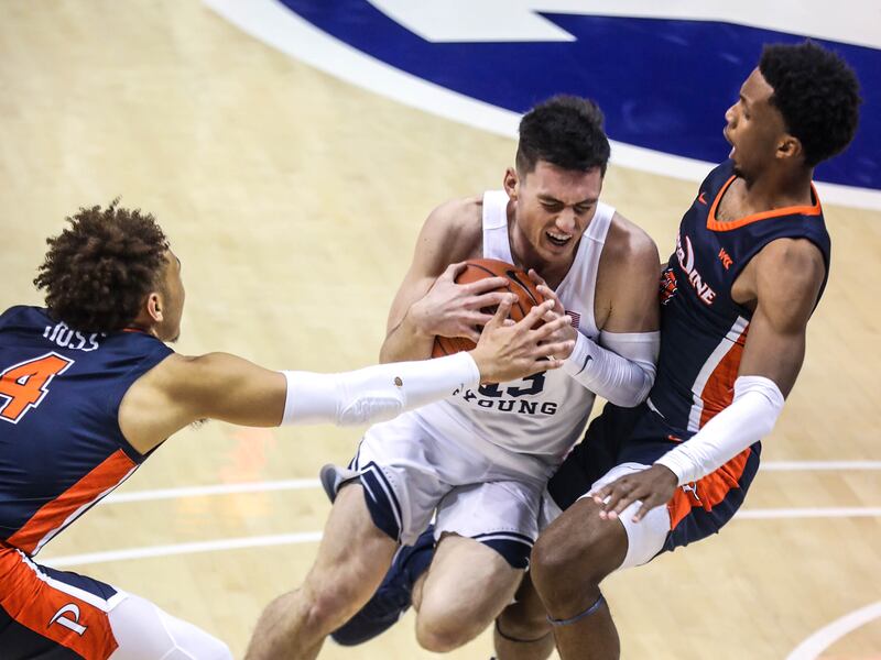 ”Man, we love these types of games. We don’t want to blow a team out. We want games that are close, which can actually help us grow as a team and help us be ready for tournament time,” said guard Trevin Knell, who drilled four 3-pointers and finished with 12 points. “This BYU team, we’re different from old BYU teams. We take pride in our defense. We work every single day on two things — getting shots and footwork. We really work hard on defense. Practices are grueling but nothing’s better than getting a win on our home floor.”