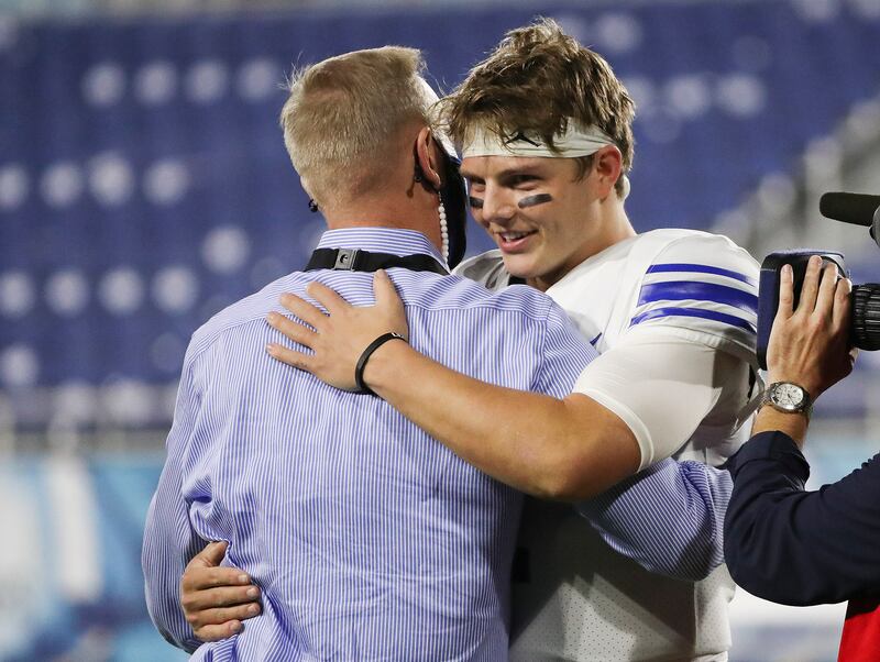 “It’s my dad,” he said. “From Day One, he’s always had a lot of input. He wasn’t a quarterback, but we would just figure stuff out on our own from the very beginning. … It has been a cool process to go through it with him.”