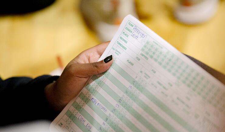 It’s his daughter’s high school basketball game, and he’s the coach.