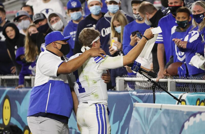 “I think he’s got that ‘it’ factor that a lot of people talk about that you probably can’t gauge and there’s no way to measure, but he’s just got ‘it.’ Leadership ability, also the ability to work hard and put everything together, and then he’s got this moxie on the field that is hard to teach, and I think when you put that all together, it was my job and coach (Aaron) Roderick’s job as quarterbacks coach to allow him to be himself and to be the best version of himself. We saw that a lot of times this year and a lot of times in his career here at BYU and looking forward to seeing him do it on Sundays.”