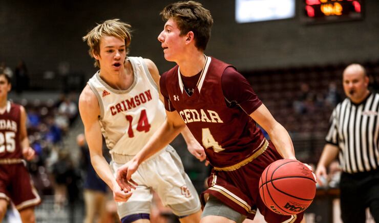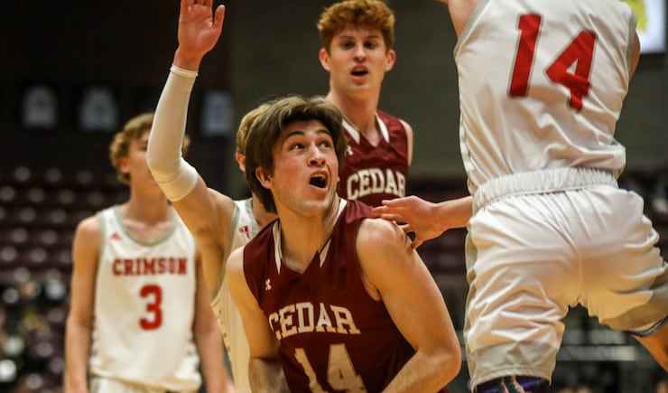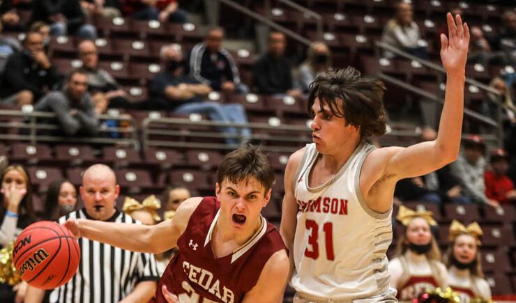 With Cedar trailing 62-61, Ty Harrison converted a layup with 8.9 seconds left to put his team ahead 63-62 and Crimson Cliffs missed a 3-pointer at the other end to try and win it with under three seconds remaining.