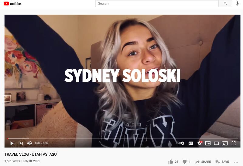 “Yeah, I’ll definitely own up to that. As I was gearing up for my senior year, I thought about that, being able to make money. And I looked at it as I’ve dedicated so much of my life to this (sport). It is a lot of my identity. So why not try? If it makes me money, great. If not, I still enjoy doing it.” — Sydney Soloski, on starting a vlog