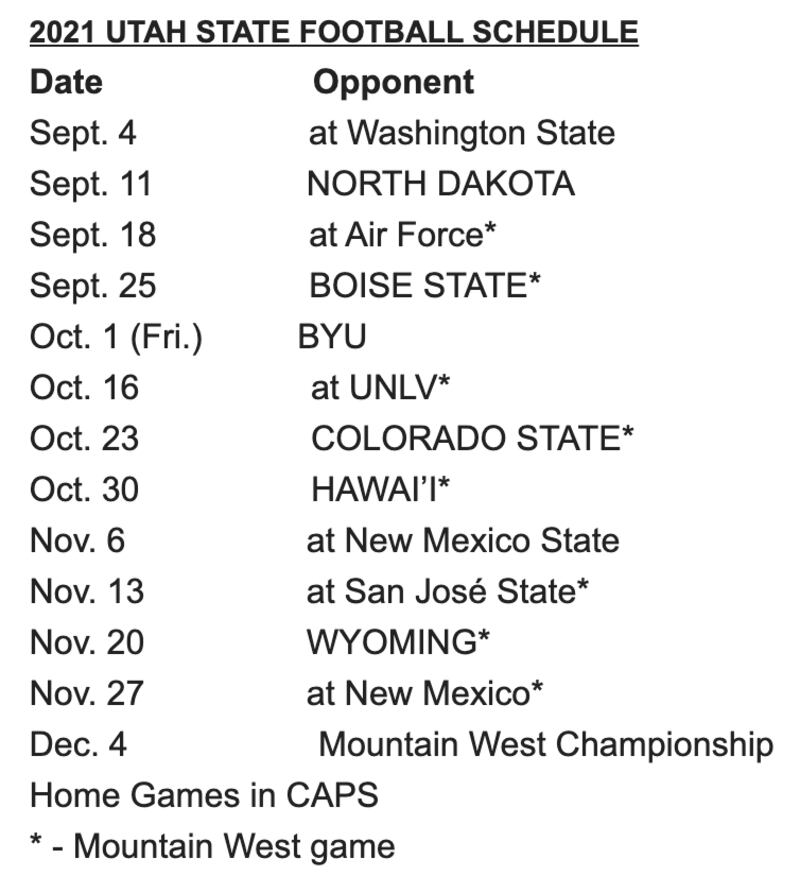 Utah State has its 2021 football schedule, if the pandemic doesn’t cause alterations, like it did during the 2020 college football season.