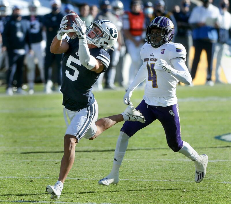 Another high-producing BYU pass-catcher who was part of Wilson’s script last week, the 6-foot, 193-pound Milne, didn’t show blazing speed in the 40 for a receiver, clocking in at 4.54 seconds, but was able to show off his precise route-running skills and dependable hands.