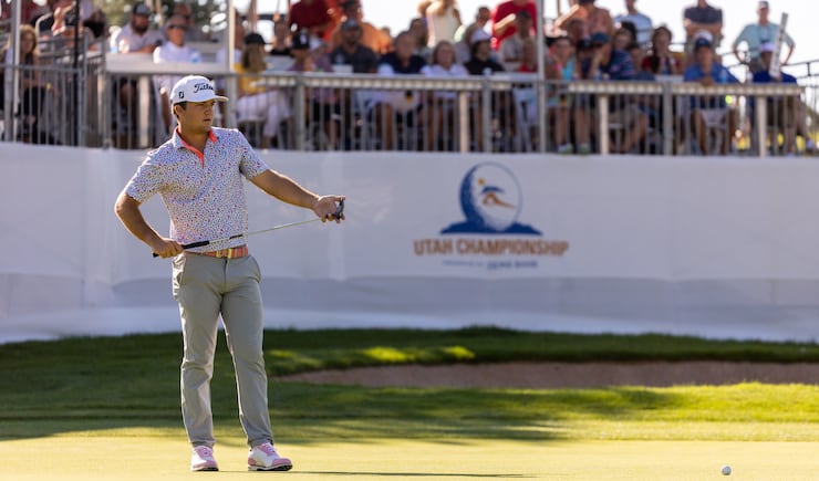“I knew I was in the hunt pretty much the whole back nine. Kinda did what I could. All in all it was a good day. I kinda left it all out there and tried my best, for sure.” — Former BYU golfer Patrick Fishburn on finishing in a tie for second at the Utah Championship Sunday.