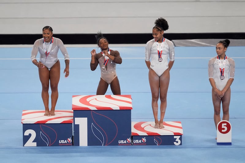 At the 2024 U.S. gymnastics championships, “Biles finished with the highest two-day score on all four events, something she’d done only once before at nationals (2018),” according to The Associated Press.