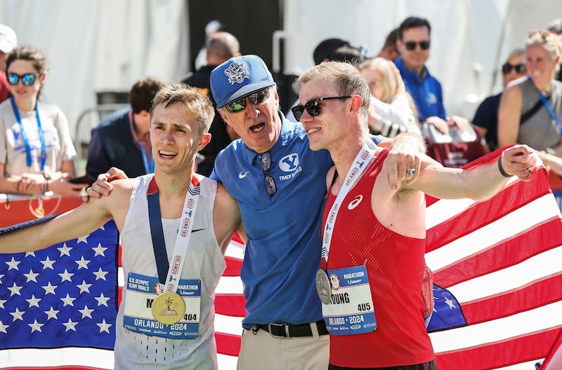 Mantz can lean on Eyestone’s vast experience with the Olympics. He was a two-time Olympic marathoner himself, competing in Seoul in 1988 and Barcelona in 1992. He’s coached other Olympic marathoners — Jared Ward in 2016 and now Mantz, Young and Rory Linkletter (who will compete for Canada). Seeing Eyestone’s success as a coach — five of his runners have qualified for the Paris Olympics — other distance runners have come to Provo to train with him, including, most recently, Keira D’Amato, the second-fastest U.S. female marathoner ever.