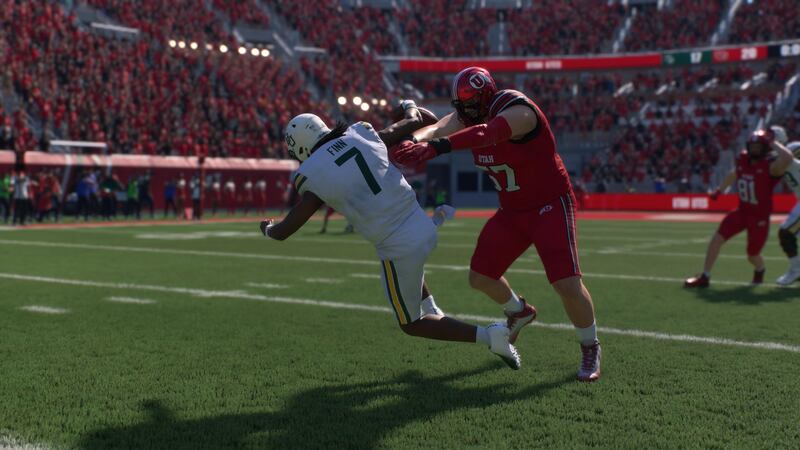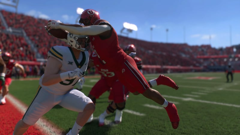 I also adjusted each team’s uniforms to what they’ll wear in the real game — Utah is going with an all-red motif topped with the drum and feather helmet, while Baylor is going all white for the contest.