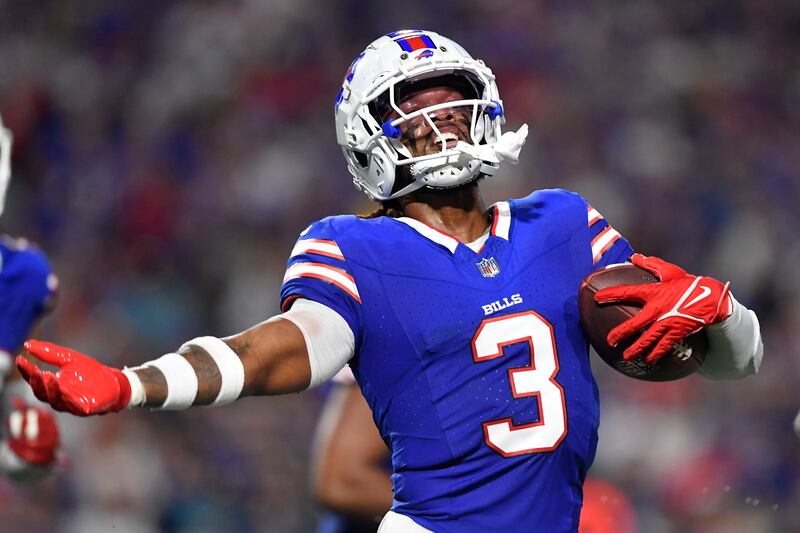 With about four minutes to go in the first half, Hamlin capitalized on an inaccurate pass from Jacksonville Jaguars quarterback Trevor Lawrence. He caught it and then ran about 20 yards before getting tackled.