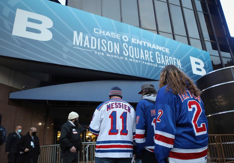 The game doesn’t start until 7 p.m. in New York, but there were fans waiting outside the arena — decked out in Rangers gear — at 11:30 a.m.
