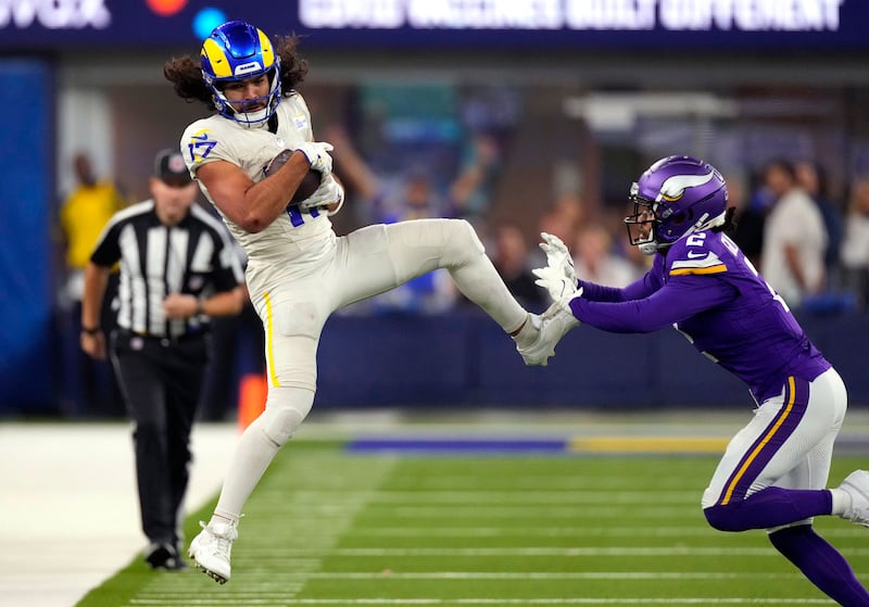 He then caught a 19-yarder later in the third quarter, moving the ball to the Vikings’ 27, before Los Angeles took its first lead at 21-17 on a Demarcus Robinson 25-yard touchdown grab two plays after Nacua’s catch.