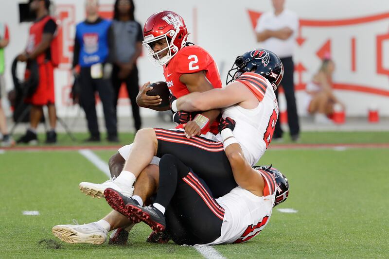 Houston went into the fourth quarter trailing 14-7, but the Cougars tied the game on a 28-yard touchdown catch by Joseph Manjack IV with 8:29 to play, then scored the game-winner after Utah’s second turnover of the night.