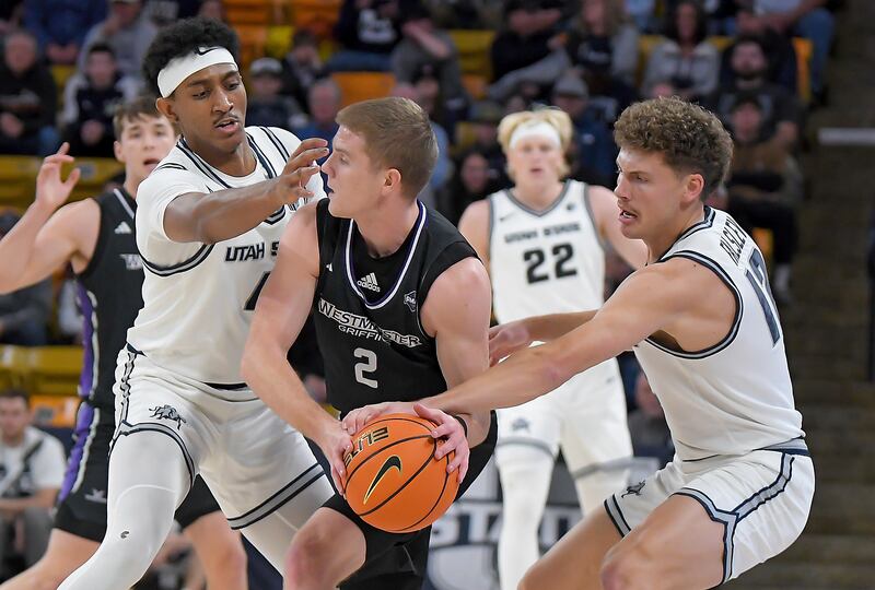 Utah State shot 63.6% for the game, including a season-best 17-for-31 (54.8%) performance from 3-point range. Westminster scored the first basket of each half, but the Griffins shot just 35% for the game and finished 6 for 15 from beyond the arc.