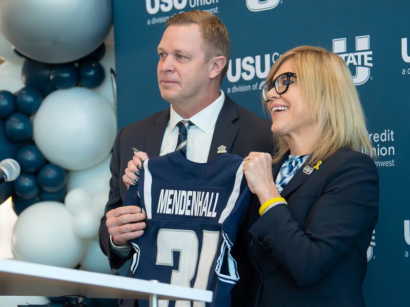“We needed someone at Utah State, for our football program, who would elevate our competitive excellence, prioritize our academic success and engage as good stewards in our community. Bronco Mendenhall emerged as that leader,” USU athletic director Diana Sabau said at Mendenhall’s introductory press conference.