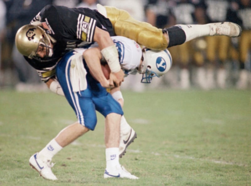Colorado, behind running back Eric Bieniemy’s 144 yards rushing and two touchdowns, grabbed the lead in the first quarter. The Buffaloes never trailed until the special team’s trio of Chaffetz, Jay Shumway and Pat Thompson marched onto the field like a budding law firm eager to win the case.