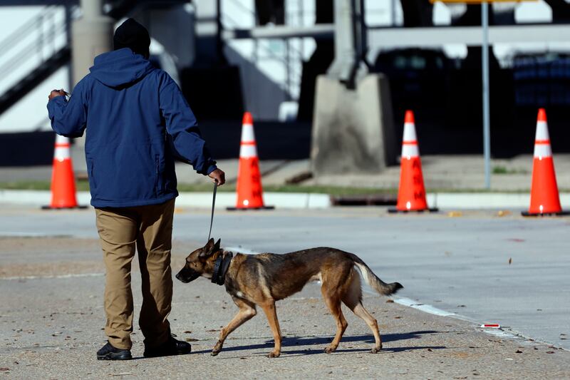 Dogs trained to identify explosives and other extra security screenings greeted football fans Thursday as they arrived at the Superdome in New Orleans for the Sugar Bowl.