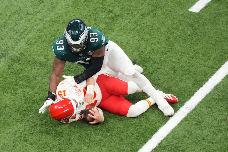 Josh Sweat had 2.5 sacks, while Milton Williams added two. In total, the Eagles sacked Mahomes six times.