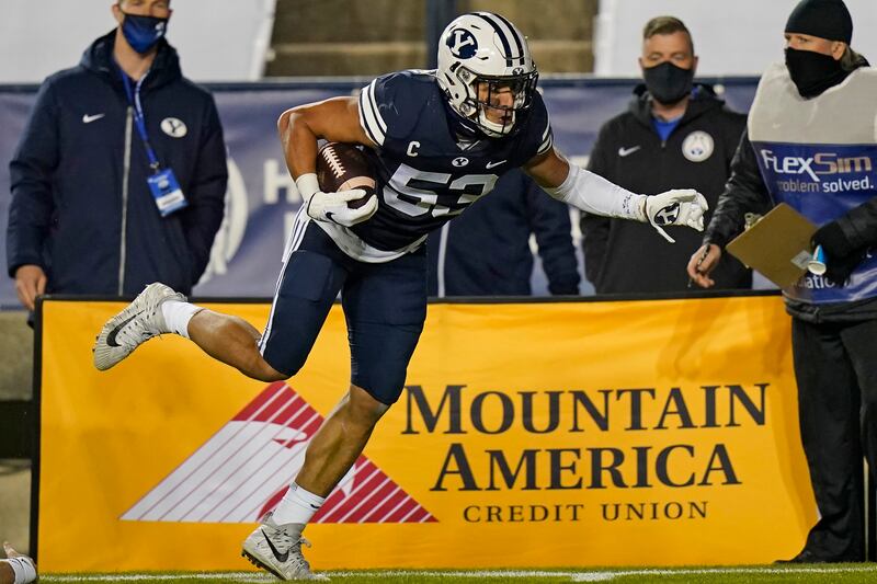 Other memorable pick-sixes include Todd Shell’s game winner against Utah State in 1981; Tom Holmoe’s 63-yard return at No. 7 Georgia in 1983; Rodney Rice’s 70-yard touchdown against Texas in 1988; Kyle Van Noy’s dramatic return against San Diego State in the 2012 Poinsettia Bowl; and Fred Warner’s pair of pick-sixes at Boise State in 2014 and 2016.