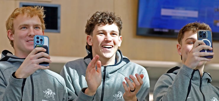 After the Utah State Aggies’ name wasn’t revealed during the first two regionals while his team watched the NCAA Tournament Selection Show Sunday afternoon, Calhoun quietly told guard Mason Falslev and forward Karson Templin to watch the 7-10 matchup Thursday in Lexington, Kentucky.