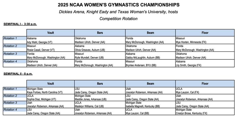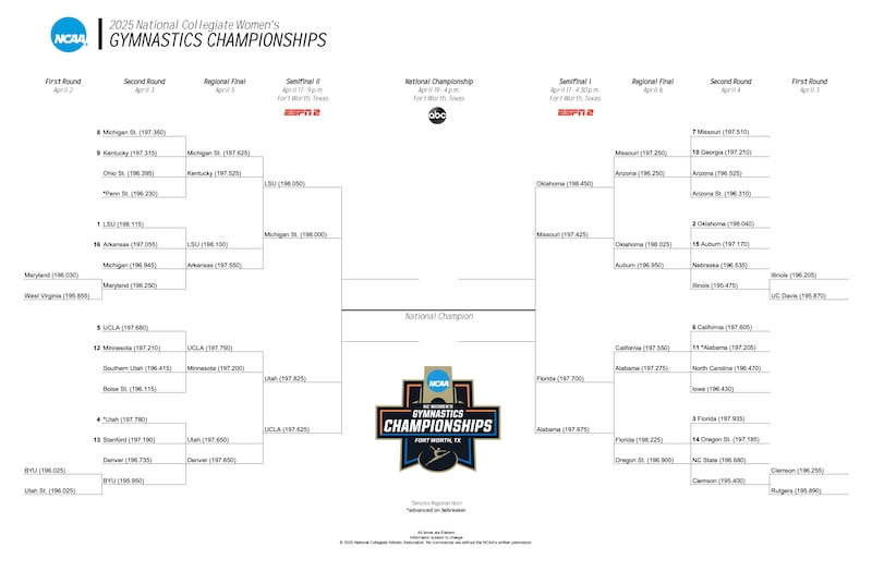 Did Michigan State reach its peak at regionals or do the Spartans have more to give? Can Florida actually perform at its best when it goes against LSU and Oklahoma? Can UCLA channel its best version of itself in Fort Worth? Will Utah figure out how to compete a complete meet?