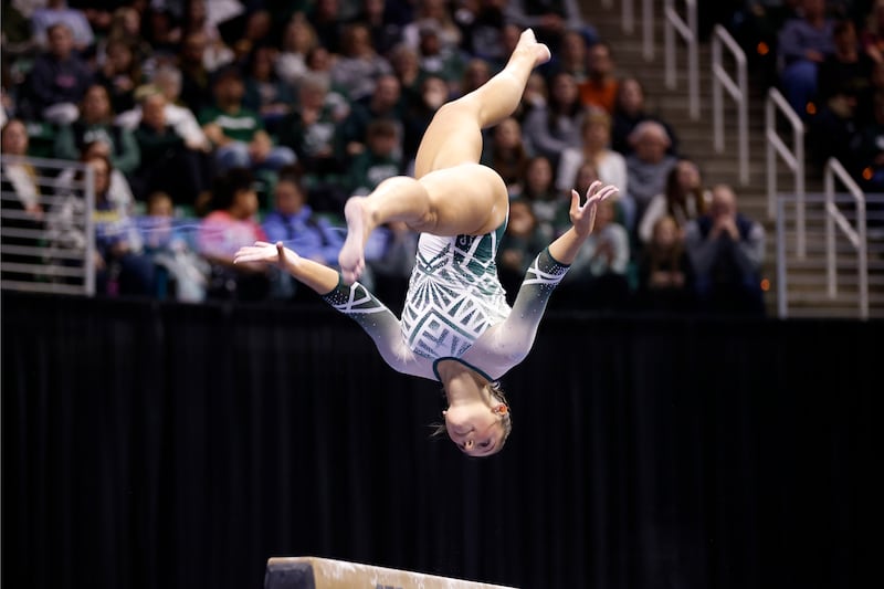 The Spartans have had two strong events (bars and vault) and two weaker events (beam and floor) this season. They close the national semifinal Thursday night with their two weakest.