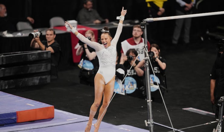 She scored 9.8500 for her effort, which tied for the second-best vault score by a Utah gymnast Thursday. More importantly, she got the Red Rocks started right on an event that had been their Achilles heel in past postseasons. While Utah didn’t thrive on vault the way it could have, the Red Rocks scored high enough on what has been their worst event to keep them in the meet entering the final rotation. In no small part because of Gilstrap.