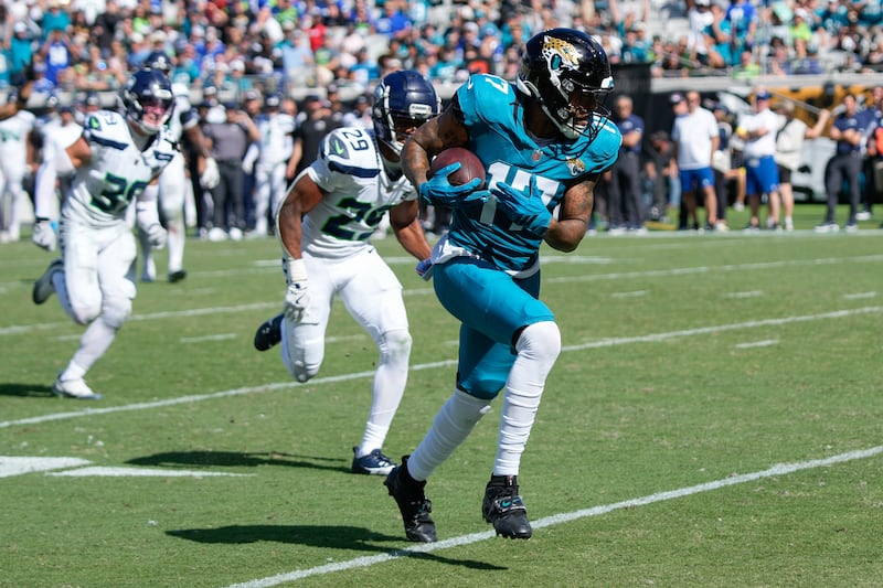 Tim Patrick, who starred at Utah, caught a 26-yard touchdown pass for his first touchdown with Jacksonville after being traded to the Jaguars this offseason. That TD grab came in a 20-12 loss to Seattle.