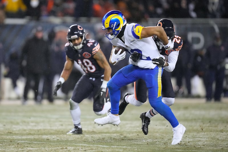 Nacua caught a short pass and broke through a tackle attempt, then turned upfield and dragged Bears cornerback Jaylon Johnson several yards en route to a 13-yard gain to the Chicago 27.