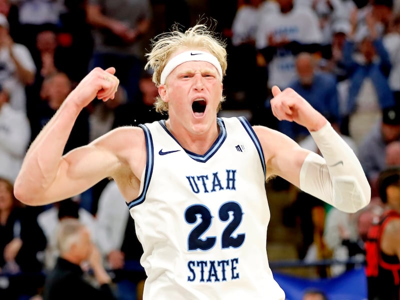 Collins (14 points), junior guard Mason Falslev (21 points) and freshman forward Adlan Elamin (15 points) led the way offensively for the Aggies in their loss to UNLV, but Utah State didn’t help their chances by going just 17 for 31 from the free-throw line. Freshman forward Tyrin Jones (5 for 13 from the field, 10 for 12 from the free-throw line), who played at Layton-Christian Academy, added 20 points for the Rebels.