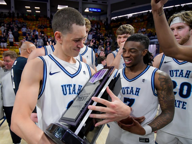 “The last three days we’ve just guarded our tail off,” Utah State head coach Jerrod Calhoun said. “I’m really proud of the guys. To win the regular season (outright) and a tournament title, we just made Utah State history. It’s never been done, so I’m just really, really proud of our guys.”