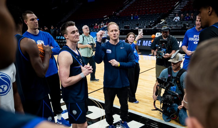 From the time he scored 21 points on 9-of-18 shooting in a 71-66 win over Villanova in Las Vegas to his 25-point effort in an 86-84 loss to UConn near his hometown in Boston, Dybantsa has thrived as the focal point of BYU’s offense. He’s now the face of the program, just as quarterback Bear Bachmeier, who is also Catholic, has emerged as the face of BYU’s football program.