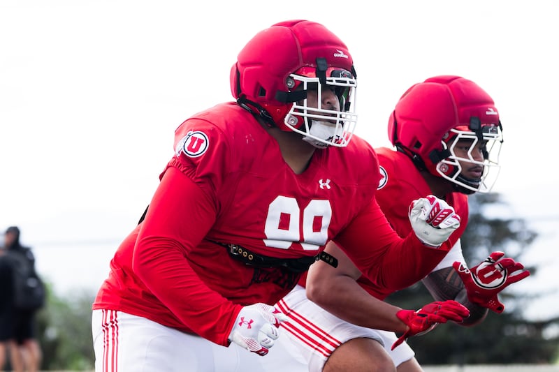 Last week’s practice clip wasn’t the first time that Utah has creatively used Taulanga in a position they’ve dubbed the “rhino.” This year’s rhino group features Taulanga and 5-foot-11, 276-pound Sione Motuapuaka.