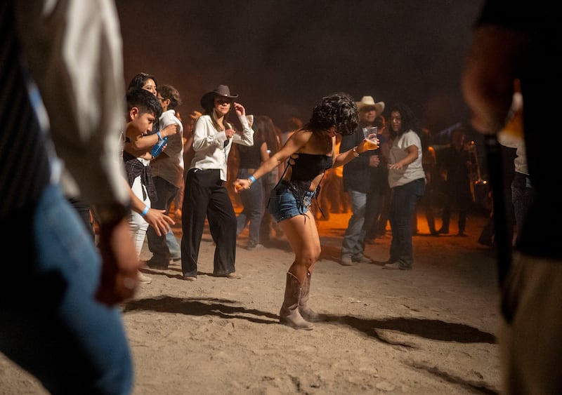 A video shared on Facebook and Instagram by Elisabeth W. Trefonas, a local immigration and criminal defense attorney, shows only a handful of seated concert-goers in the bleachers and five or so groups of dancers on the dirt arena in front of the stage.