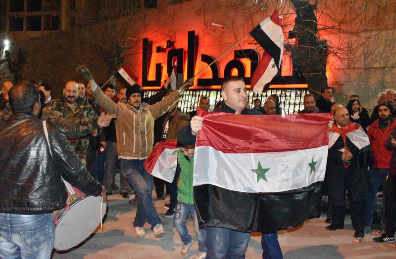 The developments sparked late-night celebrations in the streets of Aleppo that continued through Monday, with state media showing residents waving flags and dancing in roads packed with vehicles.