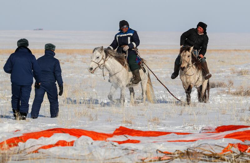 The Soyuz capsule carrying Koch, station Commander Luca Parmitano of the European Space Agency and Russian cosmonaut Alexander Skvortsov, touched down southeast of Dzhezkazgan, Kazakhstan, at 3:12 p.m. (0912 GMT).