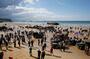 “Last year, this place was full with jeeps, trucks, people dressed up as soldiers,” said Eric Angely, who sat on a seawall wearing a World War II uniform after taking his restored U.S. Army jeep out for a ride.