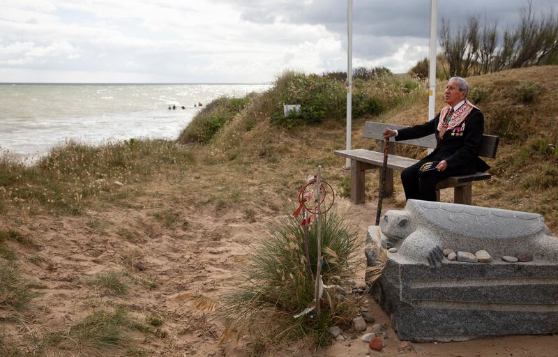 “I guess I will be alone here this year,” Shay said before he performed a Native American ritual to honor his comrades by spreading the smoke of burning white sage into the winds lashing the Normandy coast Friday.