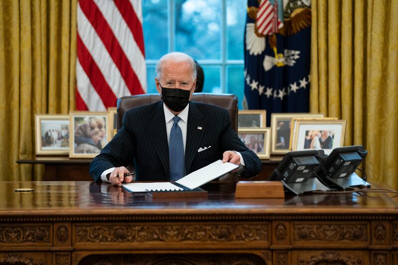 Biden signed the order before his Oval Office meeting with new Defense Secretary Lloyd Austin, Chair of the Joint Chiefs of Staff Mark Milley and Vice President Kamala Harris, according to NPR.