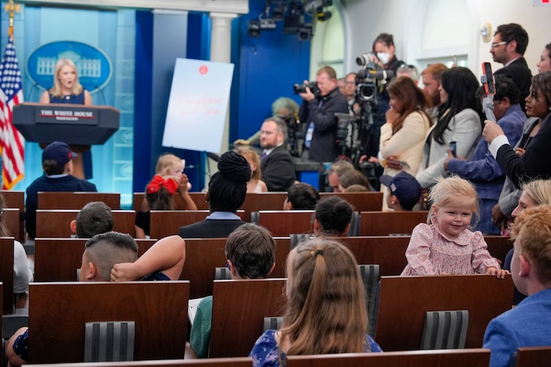 - White House press secretary Karoline Leavitt answered questions from the kids of staffers and journalists Tuesday during Take Our Daughters and Sons to Work Day.