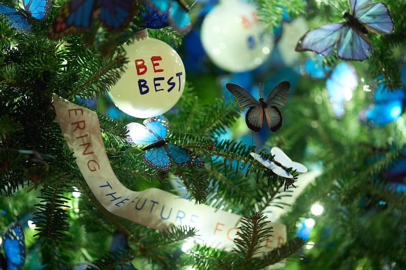 Over the years, first ladies have chosen themes that reflect different personal values or periods in the nation’s history. For instance, Laura Bush’s 2002 theme, “All Creatures Grand and Small” highlighted her love of animals, while her 2008 theme, “A Red, White and Blue Christmas,” was inspired by letters from Americans following the events of Sept. 11, 2001, per the White House Historical Association.