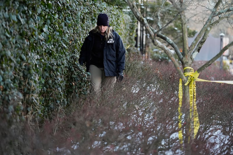 Investigators went door-to-door Monday looking for home and business surveillance footage that could help track the suspect, while officials said there were no credible ongoing threats to the community.