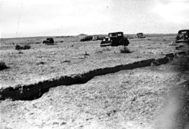 The movement soon leaves a new 10-foot-tall ledge or "scarp" — a height that varies at different points along the fault — as scientists had predicted. The scarp is 29 miles long and now divides areas west and east of it like a great wall. Roads that were once level now have a 10-foot drop-off. Power, water and gas lines there snap.