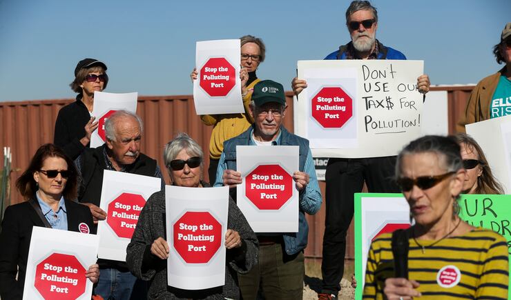 “Our primary concern is this development is happening without any environmental analysis of the air quality impacts, the water quality, wildlife habitat impacts,” said Deeda Seed, a campaigner for the Center of Biological Diversity and a lead organizer of Stop the Polluting Port.