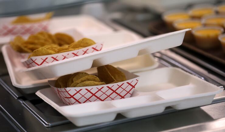 The compostable trays come at a cost to the school district’s nutrition services department, however. They cost 7 cents each compared to 3.5 cents per foam tray.