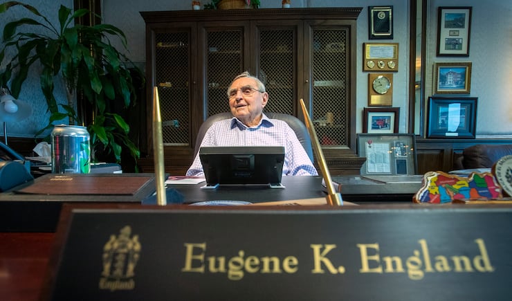 England sat down with the Deseret News in his office inside the company’s West Valley City headquarters recently, just days ahead of his 100th birthday on Thursday.