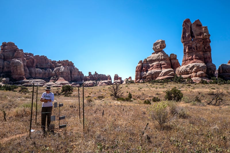 Twice a year, scientists hike in and spend a few days studying the unspoiled grassland. The first studies were done by Brigham Young University in the 1950s; the current study began in the mid-1990s. Over the decades, scientists have been able to monitor the changes —and the things that don’t change — in an environment that’s more nearly natural than the rest of Canyonlands National Park.