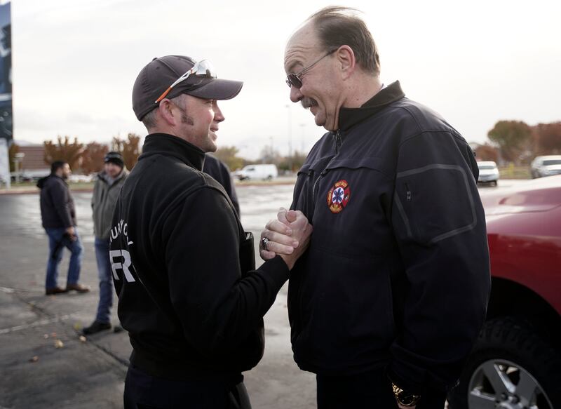 Among those who joined the group Tuesday is Unified Fire Authority’s Dominic Burchett, the younger brother of Draper Battalion Chief Matthew Burchett, who was killed last year while fighting the Mendocino Complex Fire in California.