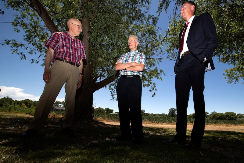 We are sitting in a restaurant called Jeremiah’s next to the Best Western motel in Marriott-Slaterville. Dick Marriott and his cousin, Russell “Tooey” Marriott, are on one side of the booth. Their second cousin Bill Morris is on the other.